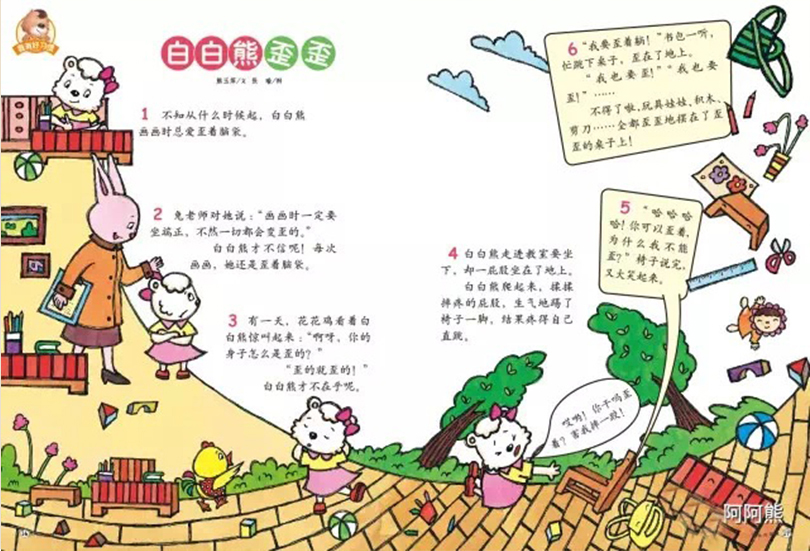 《阿阿熊》杂志的特点之一是其精美的插图,插图颜色鲜艳、画风可爱,吸引孩子们的注意力。通过丰富多彩的插图,孩子们可以更好地理解故事情节和相关内容,并对所阅读的内容产生浓厚的兴趣。此外,杂志还会有专门的版块介绍一些简单的手工制作技巧,如折纸、剪纸、绘画和手工制作等。这些手工制作活动既能够锻炼孩子们的动手能力和创造力,又能够激发他们的想象力和对美的追求。