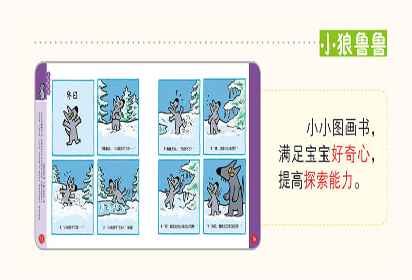 《大灰狼画报》的主要栏目:一故事刊、益智刊、绘本刊、贴纸等。