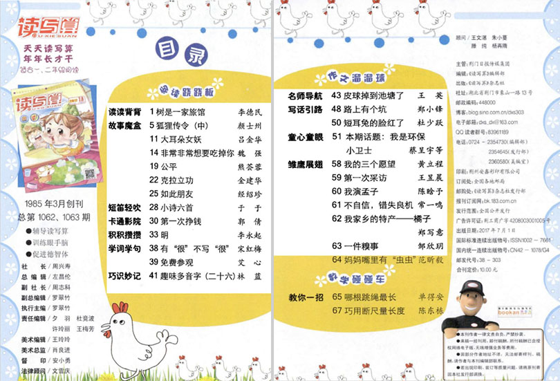 杂志的封面通常采用明快而引人注目的设计,色彩鲜艳,吸引小学生的目光。打开杂志,孩子们会发现里面有丰富的内容等待他们去探索。首先,《读写算》杂志会呈现多种形式的阅读文章,例如故事、传记、科普知识等,旨在激发孩子们的阅读兴趣和阅读理解能力。这些文章既有趣味性,又有一定的教育价值,让学生在阅读中享受乐趣的同时,提高语言表达能力和理解能力。