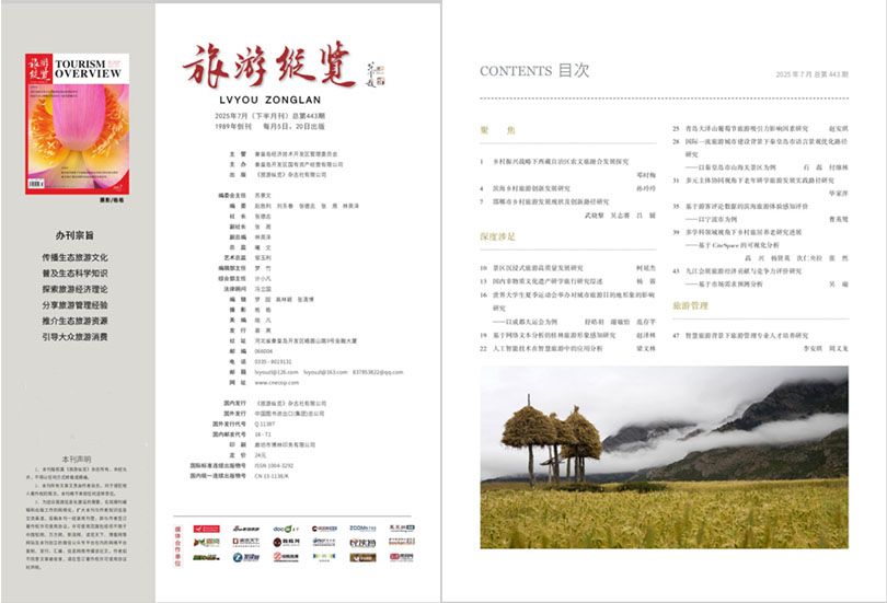 《旅游纵览》主要栏目:旅游经济研究、旅游管理研究、生态环境保护、城市旅游研究、会展发展研究、酒店管理研究、旅游教育研究、旅游文化论坛。