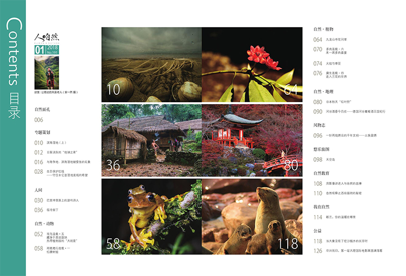 主要栏目:卷首语、专题策划、自然面孔、自然的生命、民族民俗、生存样本、智慧古鉴等。