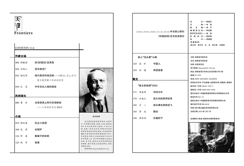 其次,《天涯》杂志关注社会民生,经常关注那些被忽视的群体和社会问题。无论是贫困地区的教育改革、女性权益的保障、环境保护,还是流行文化现象的分析,杂志都能深入挖掘问题的本质,给予读者更多的触动和启发。此外该杂志还特别注重人物报道,通过专访和深度剖析,展现了许多有影响力的人物在各自领域的故事和思考。这些人物既包括社会名流、创业者、科学家,也包括普通人中的英雄和善行者。他们的经历和见解,为读者提供了不同的思考角度和启示。