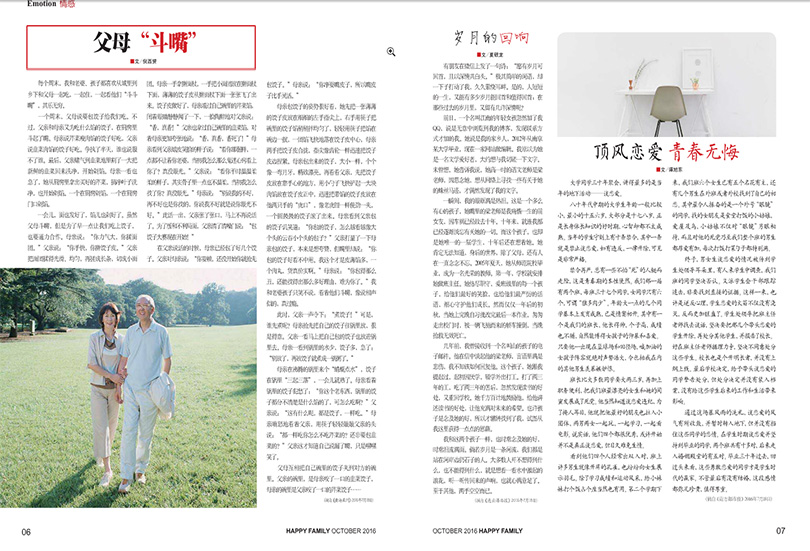 《幸福家庭》杂志内容丰富多样,涵盖了家庭幸福生活的各个方面。其中包括婚姻关系维护、亲子教育沟通、家庭理财规划、家务劳动分担、亲情交往等内容,旨在帮助读者解决家庭生活中的困扰和问题,提高家庭幸福指数。
