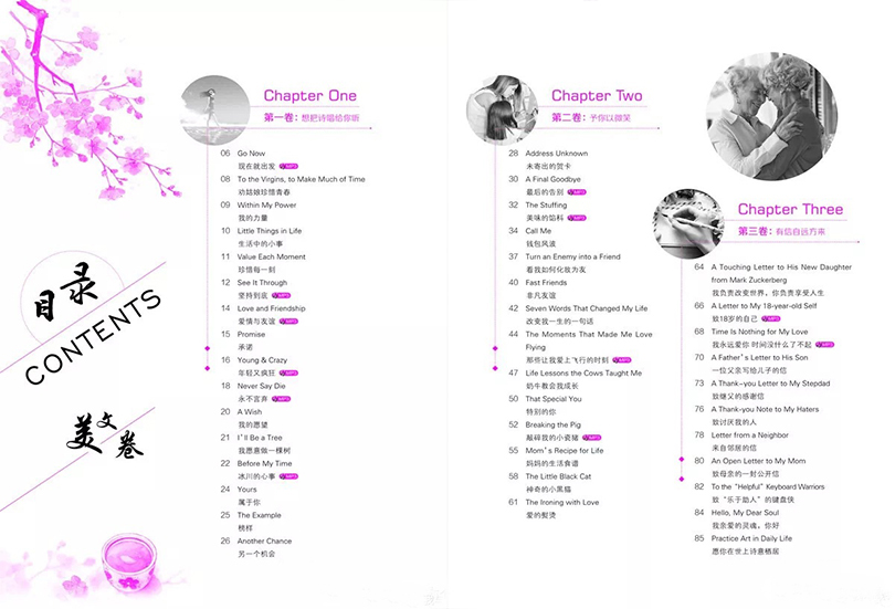 拿到这本书,我依旧习惯性地看插图,画风清丽,温馨,书页色泽亦清新,洁净,如舔了一口棒棒糖,甜津津的。再看目录,各主题浸染靓丽色泽,涵盖内容一目了然,让人感觉非常舒服。书中既有“大家”的作品,文质兼美,更有小编的温馨。